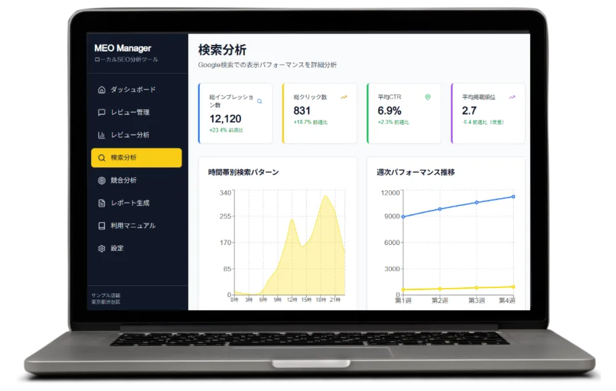競合調査を単なる比較表を埋める作業で終わらせてはいけません。競合店舗のパフォーマンスを監視し、自社との差を明確化。改善戦略のヒントに。